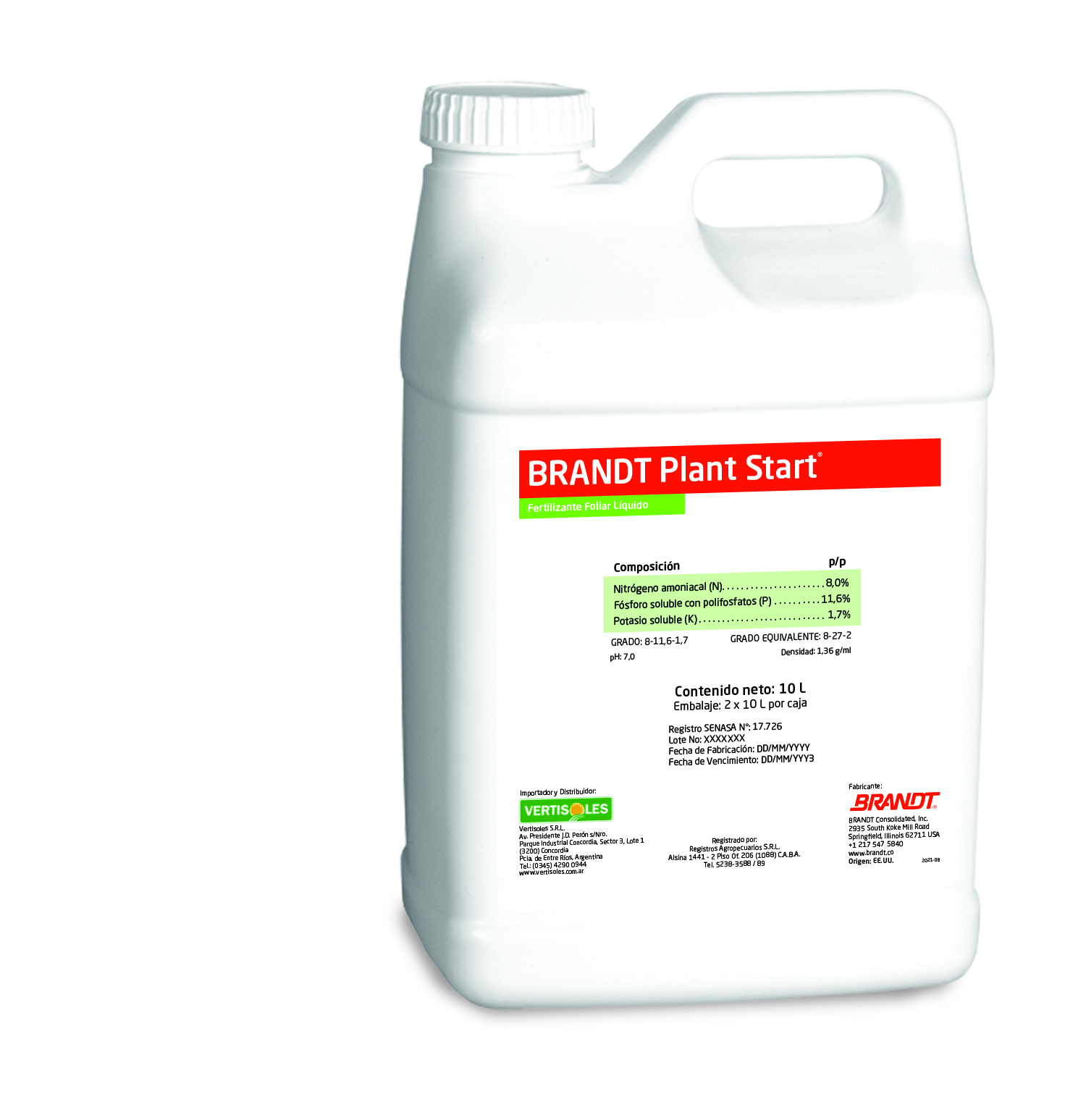 BRANDT® Plant Start es una solución alta en fósforo formulada para ayudar al crecimiento de las raíces y para superar las condiciones de estrés de las plantas. El bioestimulante especial BRANDT® Plant Start es un formulado que contiene precursores naturales de hormonas vegetales, aminoácidos vegetales naturales, vitaminas vegetales y sustancias anti estrés derivadas del extracto de algas procedente de Ascophyllum Nodosum. Esta combinación promueve un crecimiento temprano y un mejor enraizamiento que ayudará a la planta a crecer más rápida y vigorosamente.