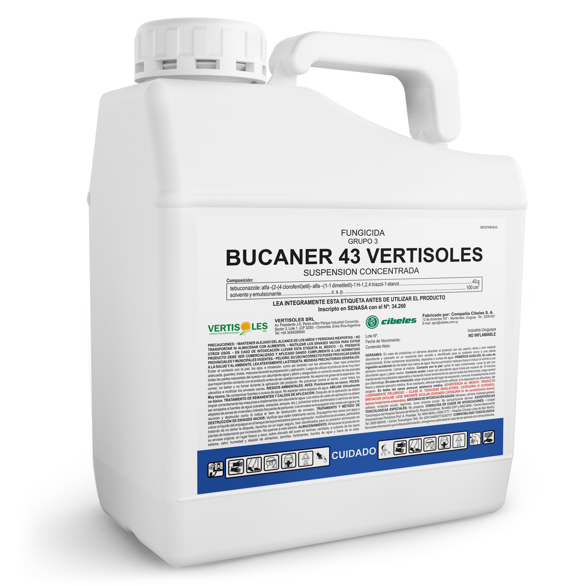 Plagas: BUCANER 430 F sarna, rhizoctonia, roya, septoria, fusarium, esclerotium, drechlera, roya de la soja, alternaria, venturia, oidio.
