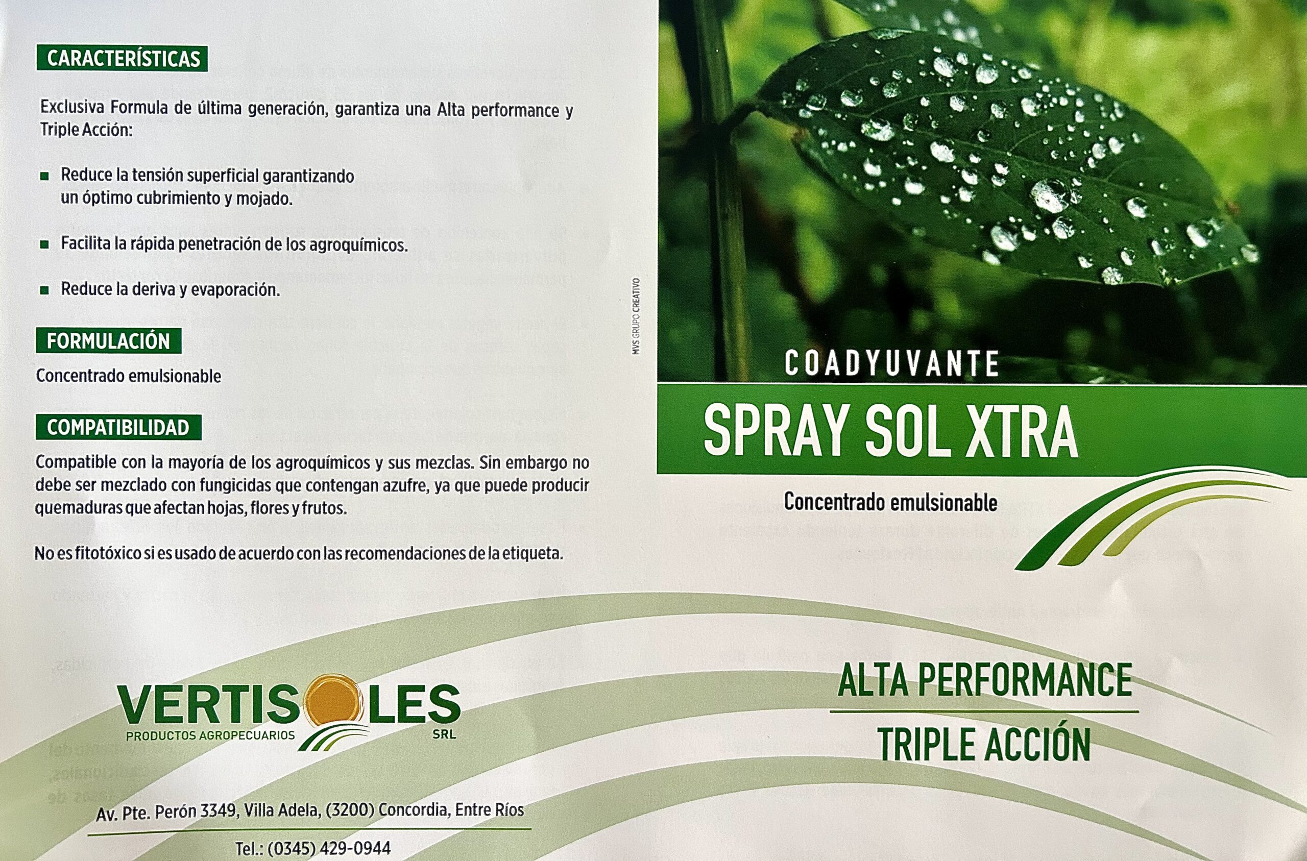 Los tensioactivos de Spray Sol Xtra fueron diseñados para generar emulsiones de alta estabilidad en aguas de diferente dureza teniendo excelente performance, que facilitan la aplicación incluso a PH extremos.